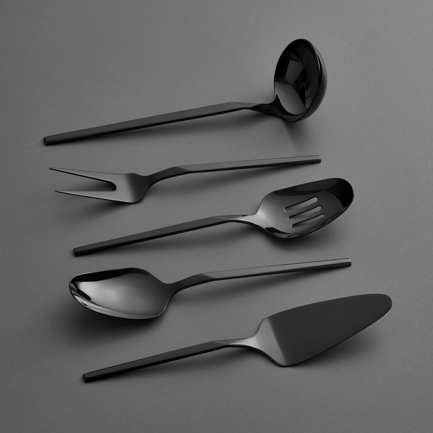 5 parçadan oluşan Jumbo 5100 servis seti, her çeşit yemeği rahatlıkla servis edebilmenize yardımcı oluyor. Set içerisinde servis çatalı, kaşığı, pasta küreği, çorba kepçesi ve yemek kevgiri yer alıyor. Her bir parça özenle tasarlanmış olup ergonomik bir yapıya sahip. Böylece kolay bir şekilde yemek sunumu yapabilmenizi sağlıyor. Siyah rengi sofralarınıza zarif bir dokunuş katarak misafirlerinizi etkileyebilmenize yardımcı oluyor. Siyah rengi diğer sofra gereçleri, çatal, kaşık, bıçak takımlarınız ile de kolaylıkla uyum sağlayabiliyor. Dolayısıyla sofra bütünlüğünüz bozulmadan harika sofralar hazırlayabilirsiniz. Siz de Jumbo 5100 titanyum siyah servis setiyle unutulmaz sofralar hazırlayabilir, sevdiklerinizle keyifli ve rahat servis yağabildiğiniz sofralarda buluşabilirsiniz.
