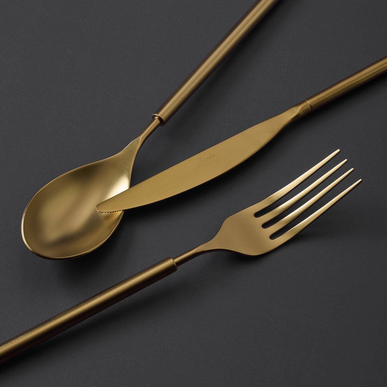 Jumbo 6000 Roller Full Mat Titanyum Gold 12 Kişilik 84 Parça Çatal Kaşık Bıçak Takımı