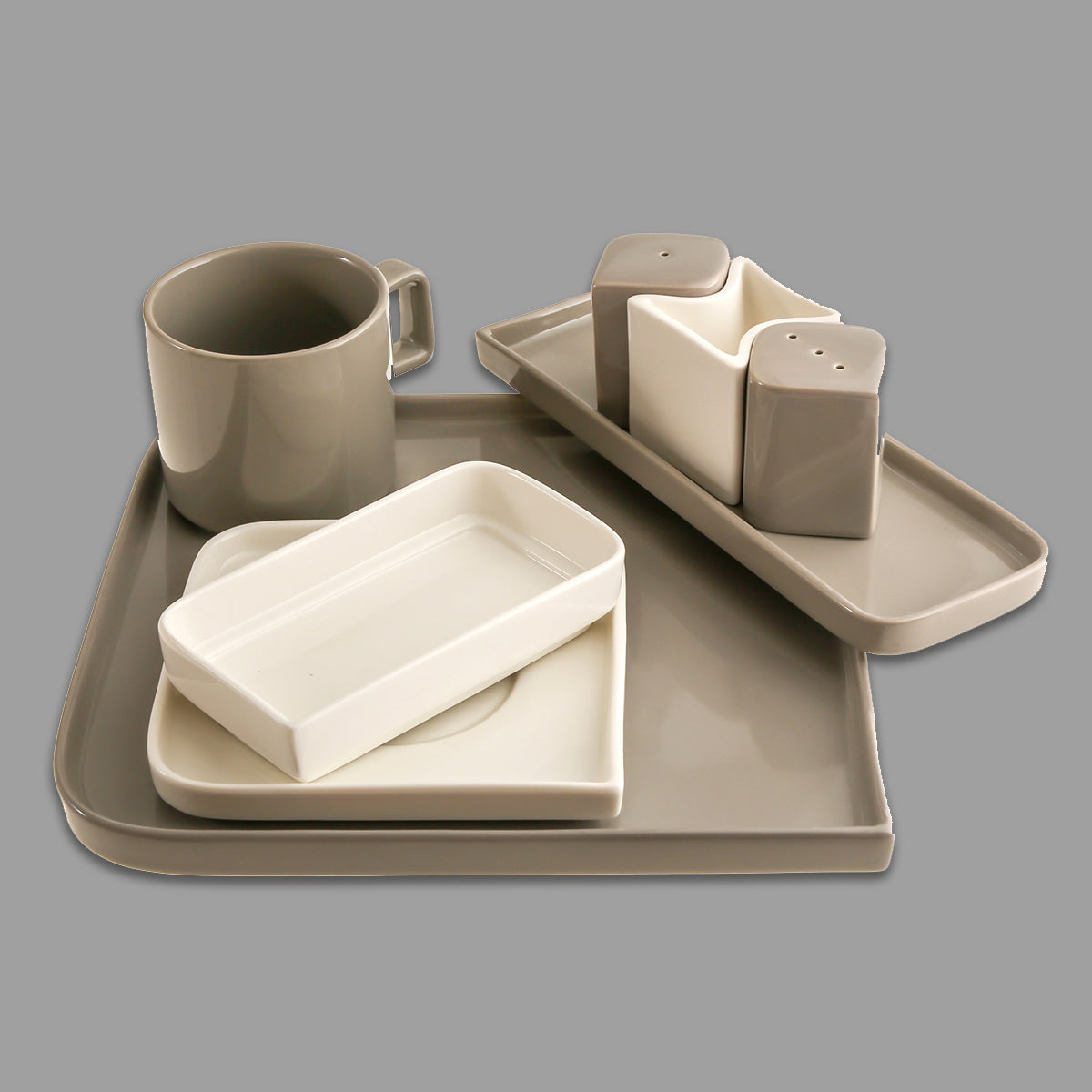 Jumbo Quadro Grey 6 Kişilik 27 Parça Kare Kahvaltı Takımı