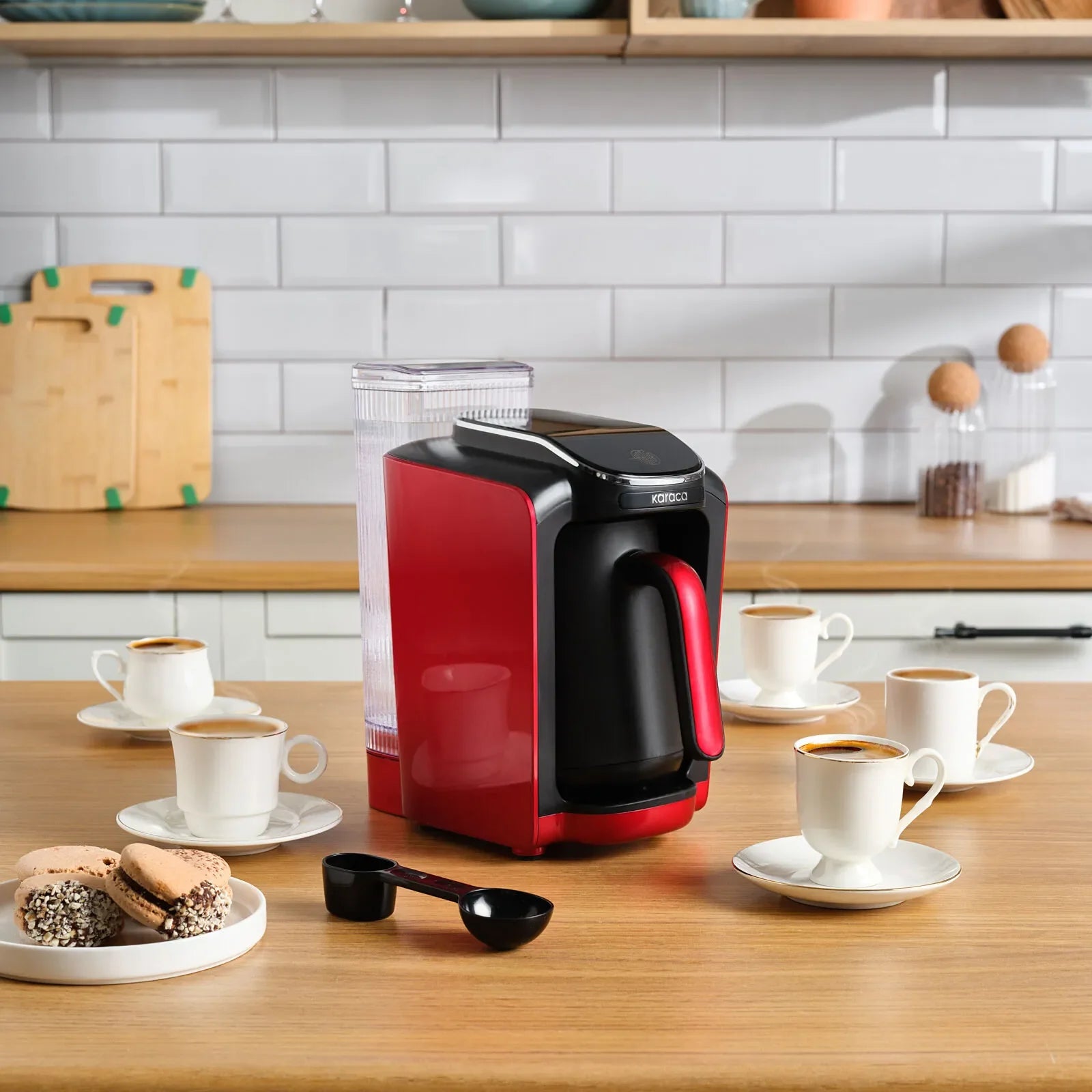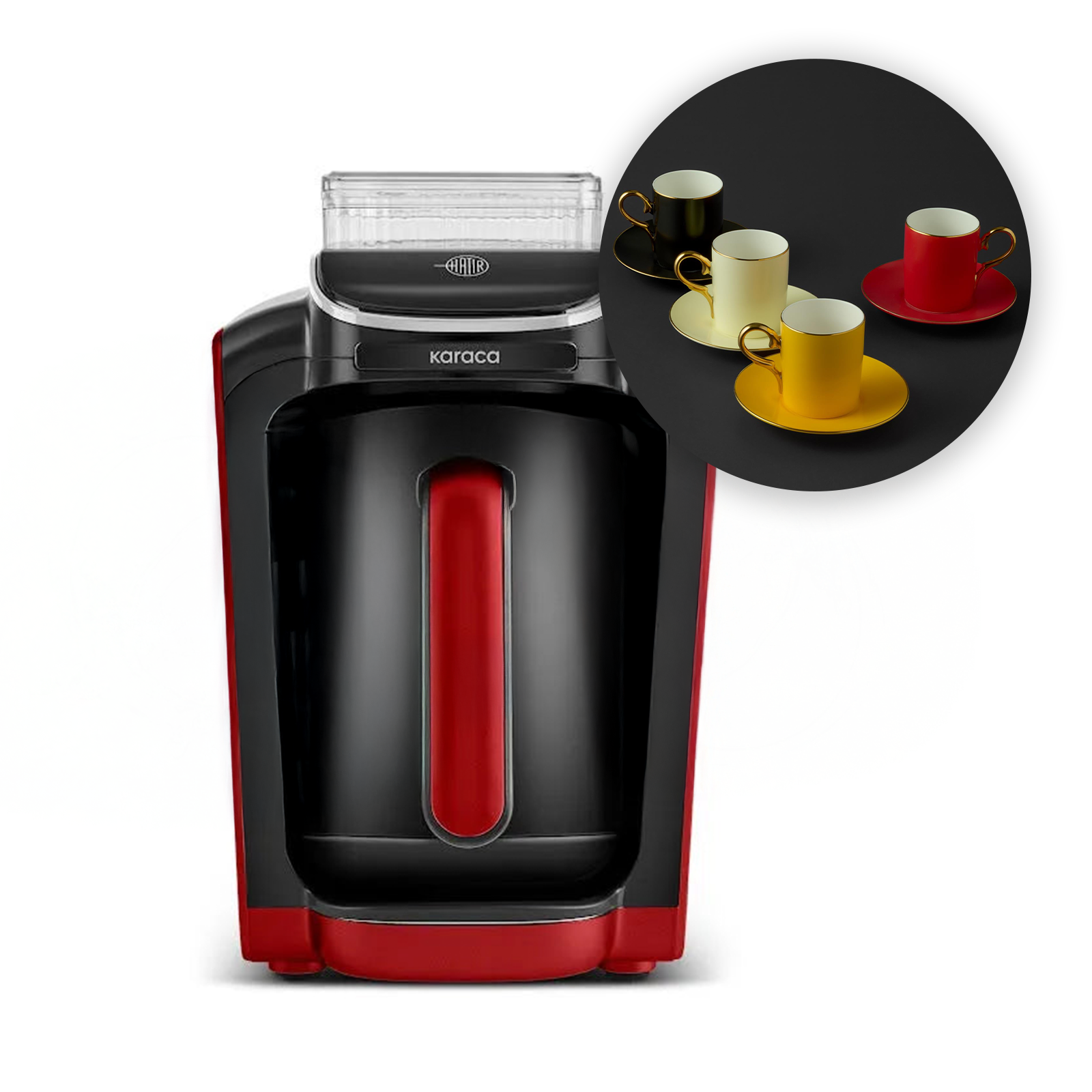 Karaca Hatır Su Hazneli Türk Kahve Makinesi Imperial Red & Jumbo Mix 4'lü Kahve Fincan Seti