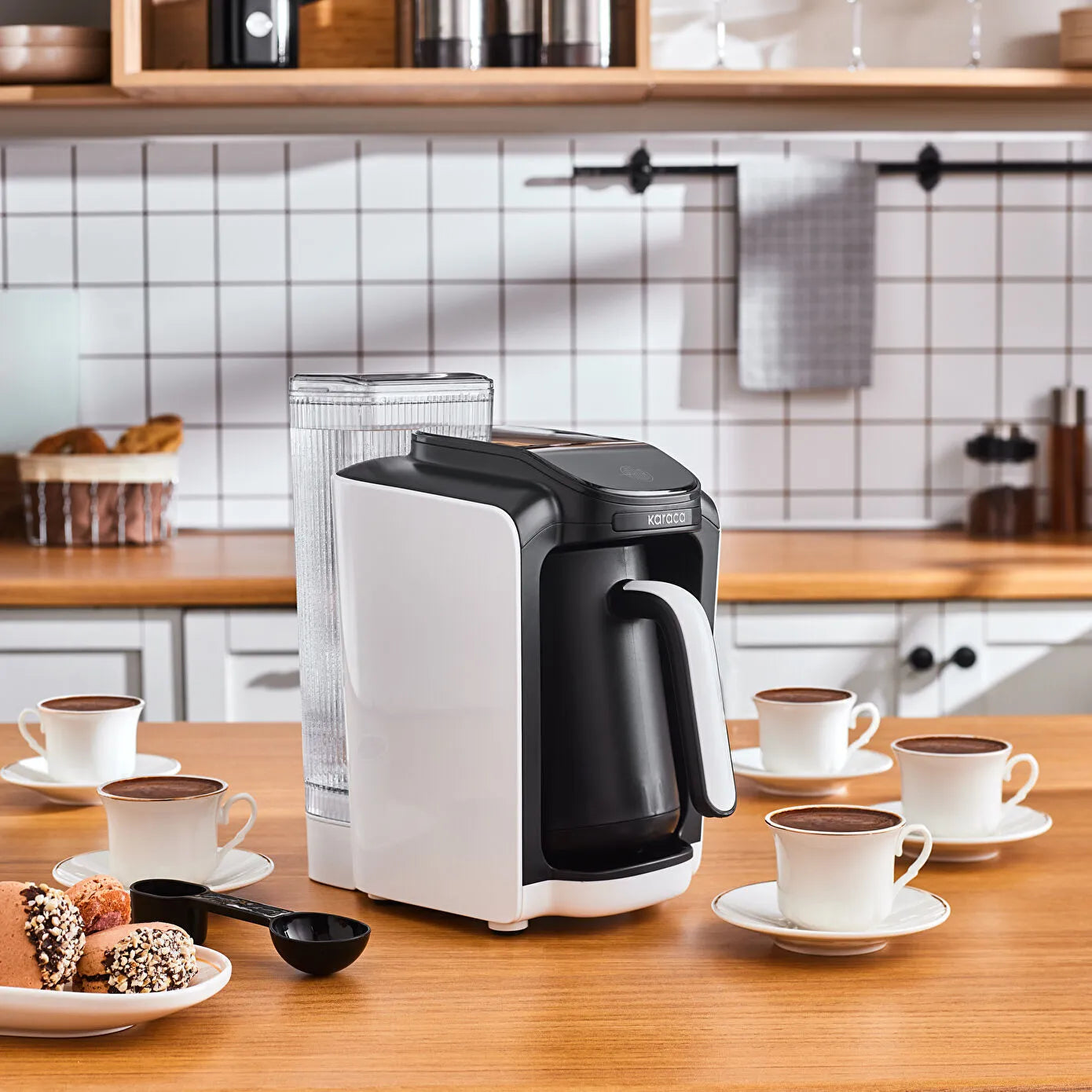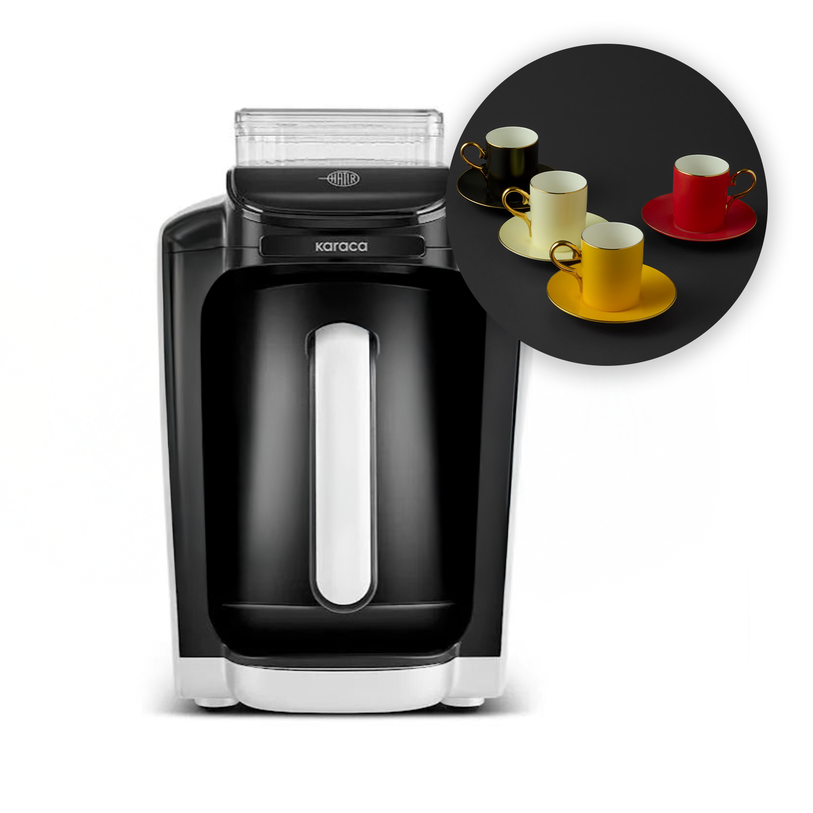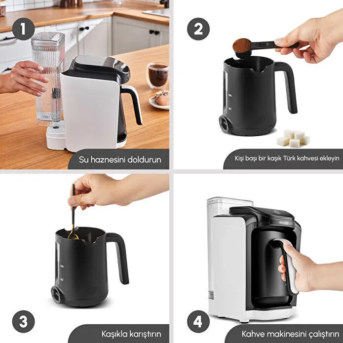 Karaca Hatır Su Hazneli Türk Kahve Makinesi White & Jumbo Mix 4'lü Kahve Fincan Seti