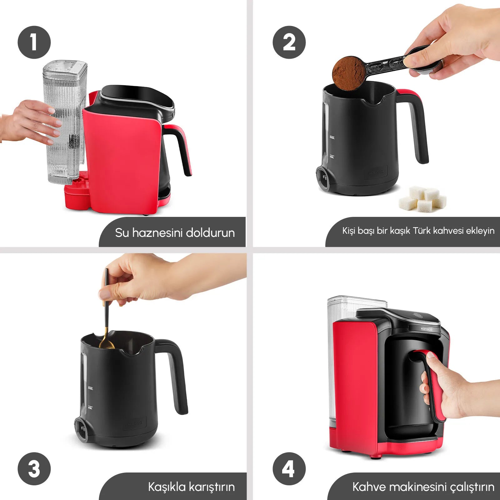 Karaca Hatır Su Türk kahve makinesidir. Süt tozu, süt, neskafe vb. kahve malzemelerinin kullanımı için uygun değildir.